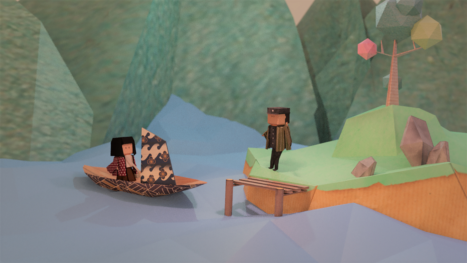 一張色紙的翻摺延展,能創造形體的多變性。透過AR眼鏡特殊的鏡片構造與手機整合虛擬場景及真實世界,使用者協助小女孩將色紙進行改造,使其成為不同情境下的載體,形塑一場虛實整合的遊戲體驗。